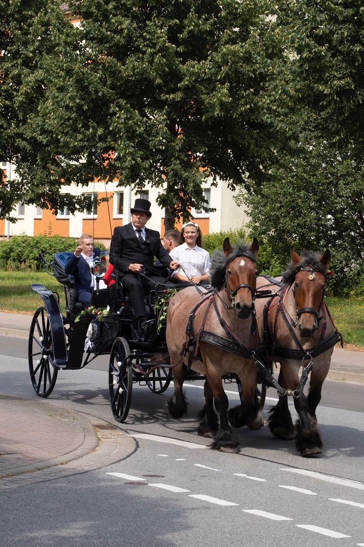 Wir bieten zwei- und vierspännige Kutschfahrten für besondere Anlässe: Hochzeit, Jubiläum, Geburtstag usw.