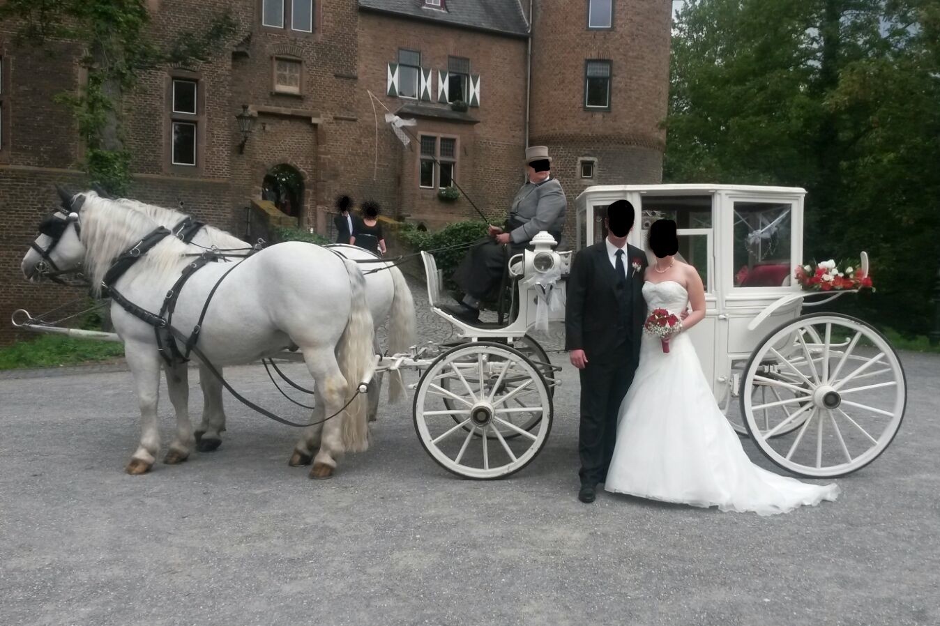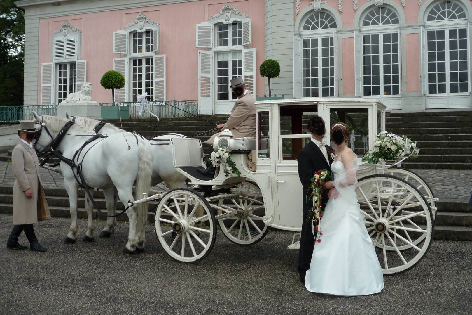 Der Preis ist abhängig vom Aufwand wie z.Bsp. Anfahrtszeit, Dauer, Art der Kutsche oder Blumenschmuck etc.